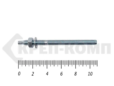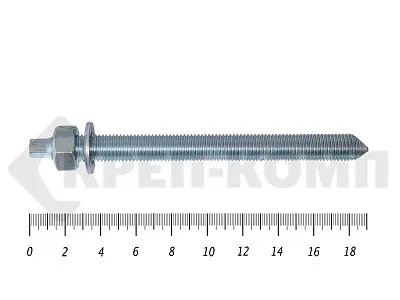 Анкер-шпилька применяется при сквозном монтаже различного оборудования. Она используется вместе с химическим крепежом, капсулой с клеевым составом или химической двух компонентной смеси из картриджа. Анкер-шпилька изготавливается из углеродистой или нержавеющей стали.
