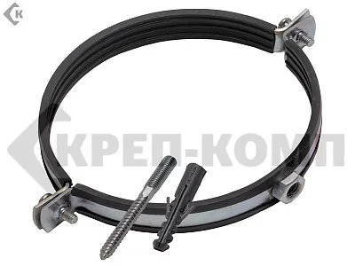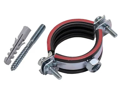Трубные сантехнические хомуты для розничной продажи укомплектованы полипропиленовым пластиковым дюбелем и сантехнической шпилькой-шурупом. Комплект собирается в пластиковый полиэтиленовый пакетик. В стандартном наборе полипропиленовый дюбель и сантехническая шпилька длиной 80 мм.