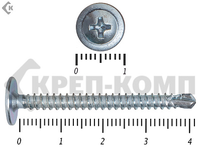 Данные саморезы имеют плоскую шляпку с шлицом под насадку Ph2. Они делятся на две основные группы: