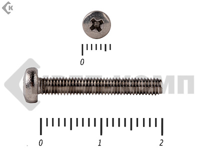 Винт с полукруглой головкой - это стальной стержень с полной метрической резьбой. Существует два варианта исполнения - с прямым шлицем и с крестообразным. Полукруглая головка обеспечивает лёгкий захват простой отверткой.
