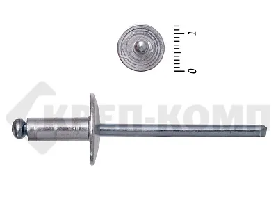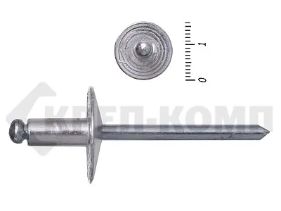 Заклепки вытяжные стандартные комбинированные с увеличенным буртиком (алюминий - сталь) используются при работе с материалами, значительно уступающим в прочности самой заклепке, увеличенный бортик значительно увеличивает площадь нагрузки, обеспечивая меньшее давление. Алюминий, из которого изготовлена рубашка данной заклепки, обладает легкостью и коррозиестойкостью. Вытяжная часть, в свою очередь выполнена из стали, основными преимуществами которой можно считать твердость и прочность.